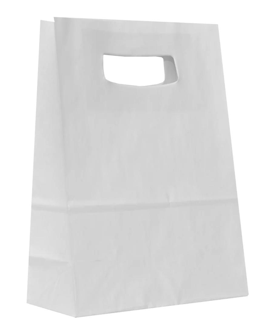 Sacoșă albă din hartie kraft, cu mâner decupat – 14 x 7 x 21 cm